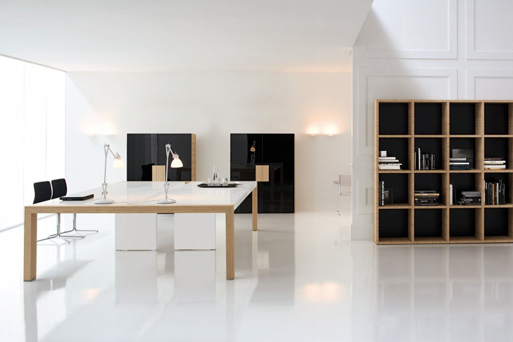 Дизайн кабинета руководителя данной серии уникален: четкие чистые цвета, много воздуха и света, прямые линии – мастеру удалось сделать невозможное: сплавить западные классические традиции с лаконичным минимализмом Востока, и это производит большое впечатление. Такой кабинет руководителя, подчиняя внутреннее пространство, создает рабочую атмосферу, отлично подойдет для уверенного в себе лидера, умеющего креативно мыслить, всегда развивающегося, не боящегося выделиться из толпы.