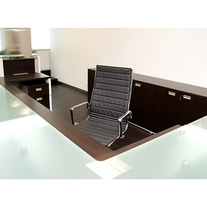 Регулировка жесткости пружины: Позволяет настроить кресло в соответствии с весом сидящего. При правильной установке спинка кресла и спина сидящего находятся в балансе, кресло с легкостью следует движениям тела. Возможно, кому-то кресло Light покажется недостаточно массивным и внушительным, чтобы выполнять важную функцию – вмещать в себе персону руководителя. Но так, скорее всего, подумают те, кто привык скрывать за массивной мебелью собственную несостоятельность как лидера компании. Человеку же, который отдает предпочтение этой модели, скрывать нечего: он полностью уверен в собственных силах и правильности всех своих действий. Ему некогда просиживать в мягком кресле, ведь в течение рабочего дня у него полно других забот. Именно таким – энергичным, деятельным, целеустремленным – и должен быть современный руководитель. Кресло Light предназначено, в первую очередь, для руководителей высшего звена. Кресло имеет черную кожаную обивку, задняя часть спинки сделана из кожзаменителя. Каркас и подлокотники изготовлены из хромированного металла. Это кресло руководителя имеет довольно много регулировочных систем. Среди них, механизм качания, устройство, которое помогает изменять положение кресла при помощи смещения тяжести человека, который на нем сидит. Система газ-патрон – пневмонический механизм, с помощью которого сидение регулируется по высоте, кроме того, обеспечивает сидению необходимую амортизацию.